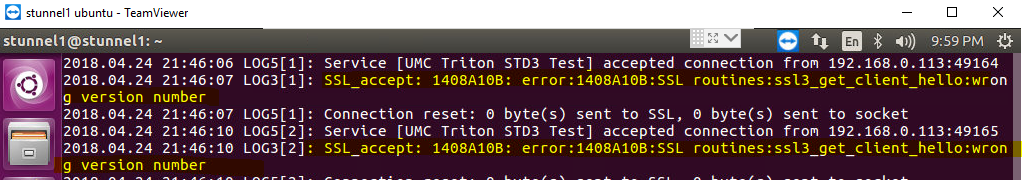 I am running stunnel 5.44 on Ubuntu 16.04.4 LTS with all updates. I cannot get devices to connect using sslv2 or 3. My conf file Options line as seen below : ;Enable support for inecure SSLv3 protocol Options = -NO_SSLv3 Options = -NO_SSLv2 I continuously get error 1408A10B SSL routines: ssl3_get_client_hello:wrong version number Do I not have SSL3 and 2 correctly defined in my conf file? I realize 2 and 3 are no longer secure, but I need to support them while I transition to TLS 1.2 thanks [cid:[email protected]]