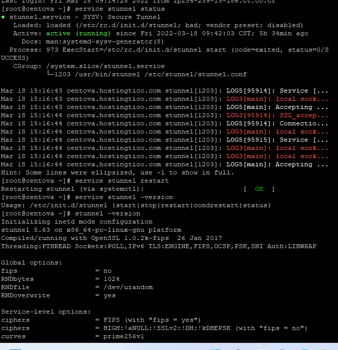 the stunnel stops showing the ssl after a few hours of operation